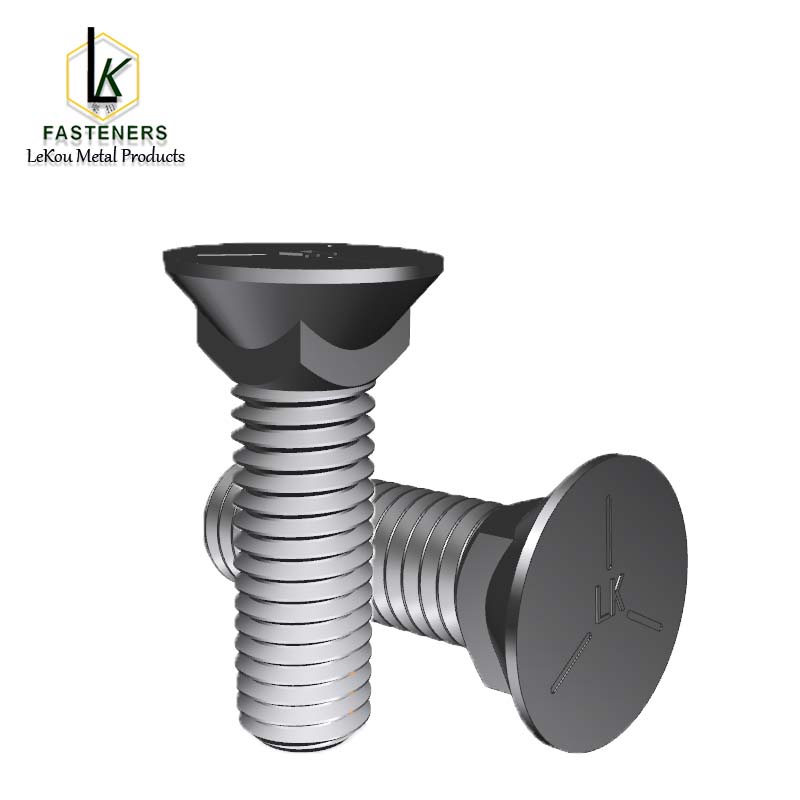 Болты для плугов можно назвать болтами для плугов с потайной головкой и квадратной шейкой, с потайным углом 80 °, погружающимися в зарезервированное отверстие, чтобы болт был на одном уровне с поверхностью соединяемой заготовки. Конструкция квадратной шейки предназначена для достижения фиксированного эффекта внутри отверстия, чтобы болт не вращался при затягивании гайки. Эти типы болтов обычно используют более высокую прочность, например, класс 5, класс 8 и т. д.